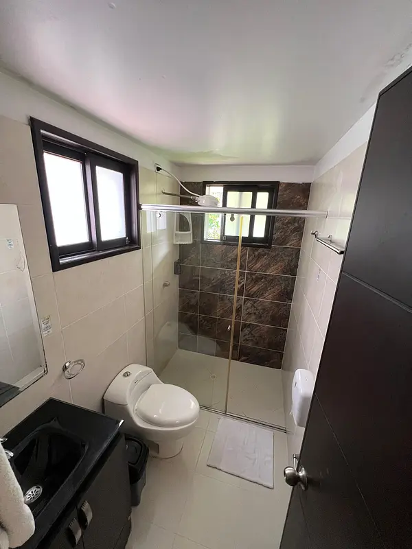 Esta elegante habitación de estilo moderno ofrece un ambiente cómodo y relajante, con hermosas vistas al jardín y un patio privado ideal para descansar.